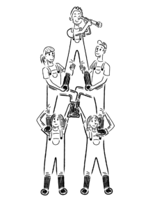 Jokainen tiimi pitää huolta oman toimintansa kannattavuudesta ja siitä, että toiminta on koko osuuskunnan edun mukaista. Yhteinen työ on siis vastavuoroista ja vastuullista. Yhteiskehittämisen kautta tiimit tekevät yhteisytyötä muiden tiimien kanssa ja jokainen toimija voi kuulua myös useampaan tiimiin omien tarpeidensa mukaan.